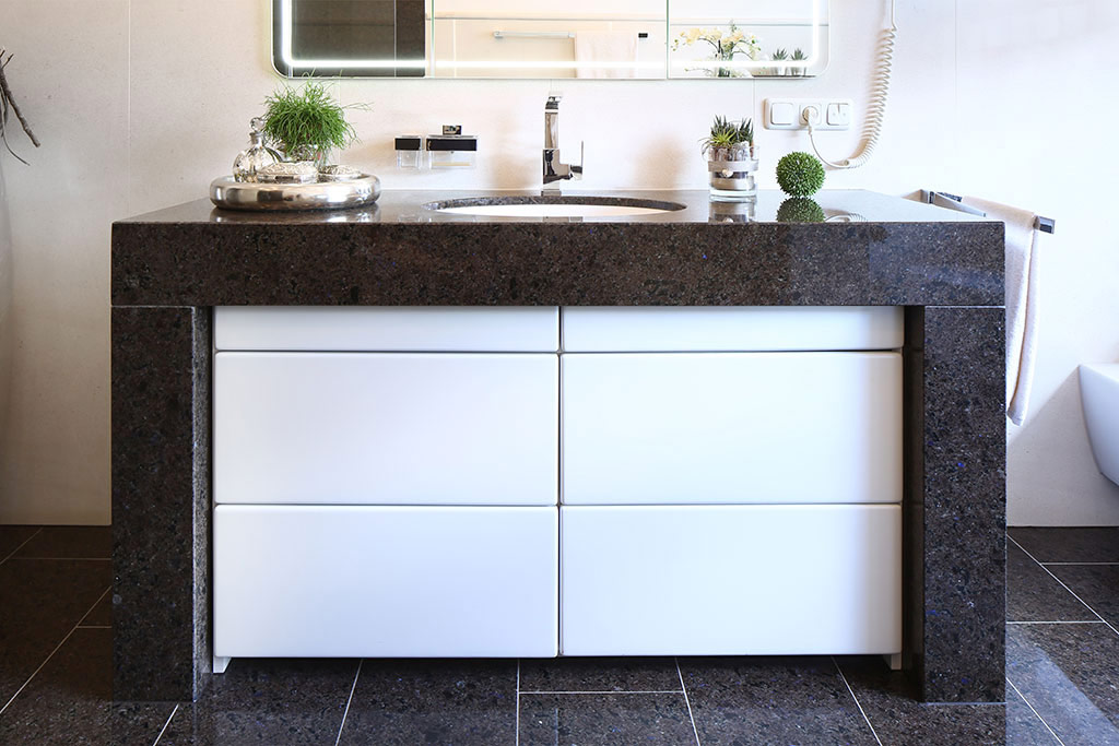 Bäder von heute entwickeln sich immer mehr zu Zonen der Entspannung. Naturstein schafft hier die perfekte Basis für Ihr persönliches Wellness-Erlebnis. Gleichzeitig sind Naturstein-Bäder langlebig und leicht zu pflegen. Ob Waschtisch, Wanneneinfassung, Wandverkleidung oder Bodenbelag - Marmor oder Granit verknüpfen im Bad harmonisch Ästhetik mit Funktionalität. Mit unserem Partner "baqua – Manufaktur für anspruchsvolle Bad-Lösungen" bieten wir auch die patentierten Flachwaschtische und Duschen mit umlaufender Rille an.