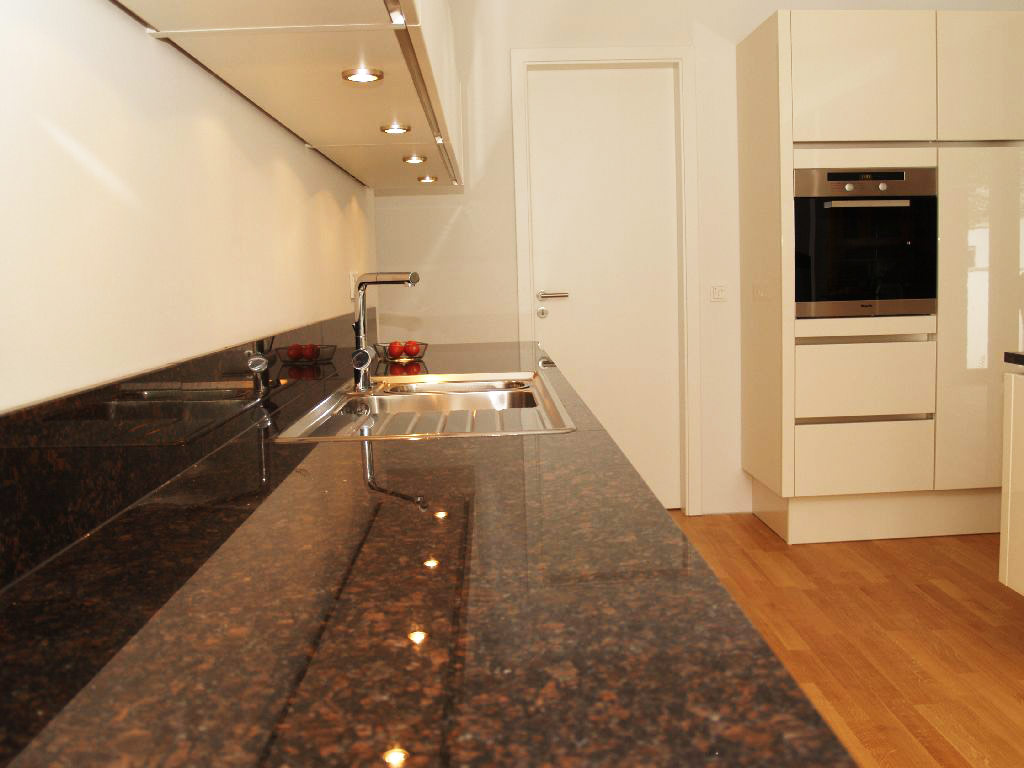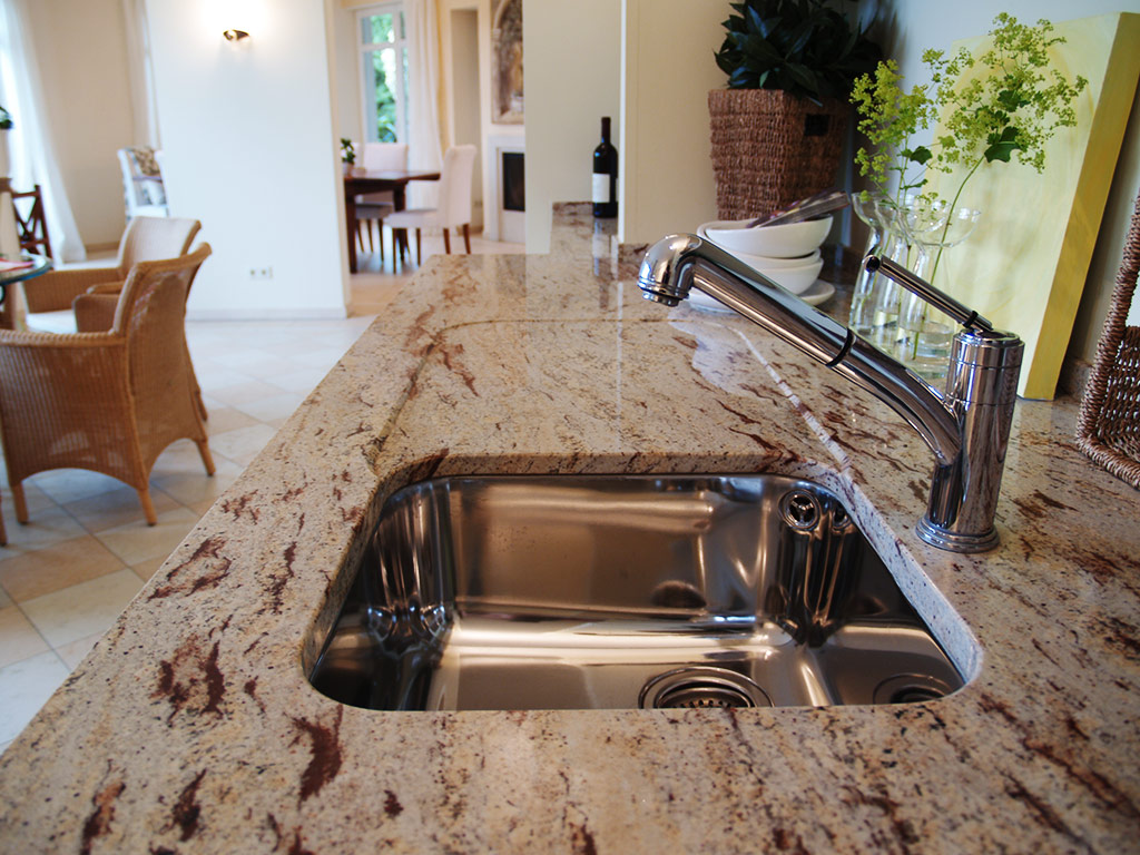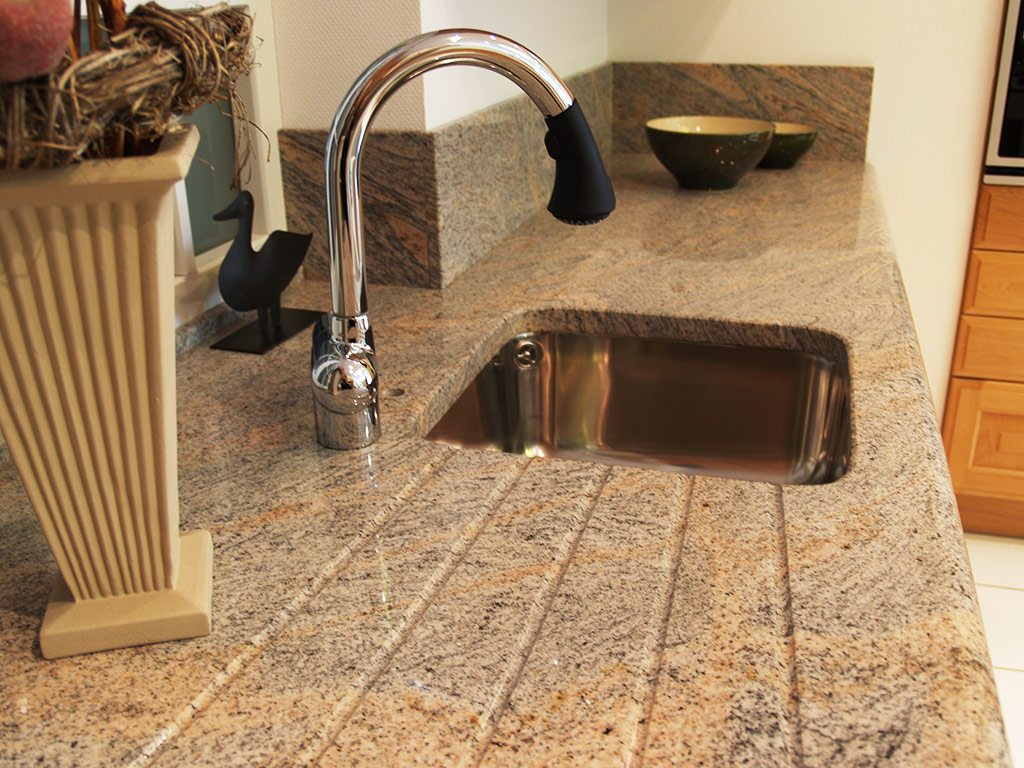 Wenn Sie die robuste Küchenarbeitsplatte suchen, bietet sich Naturstein geradezu an. Granit weist durch seinen hohen Quarzanteil einen Härtegrad auf, der die Arbeitsplatte nahezu unverwüstlich werden lässt. Sie ist zudem wasserunempfindlich, säurefest, kratzfest, pflegeleicht, hygienisch und hitzebeständig. Ob polierte oder matt geschliffene Oberfläche, ob abgerundete oder gefaste Kanten - nahezu alle Veredelungstechniken, Kantenbearbeitungen und Zuschnitte sind bei uns möglich.